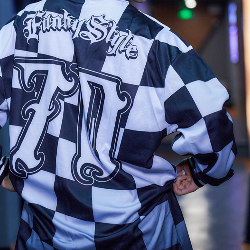 チェック柄がアクセントのヒップホップロングスリーブTシャツ