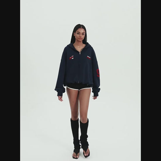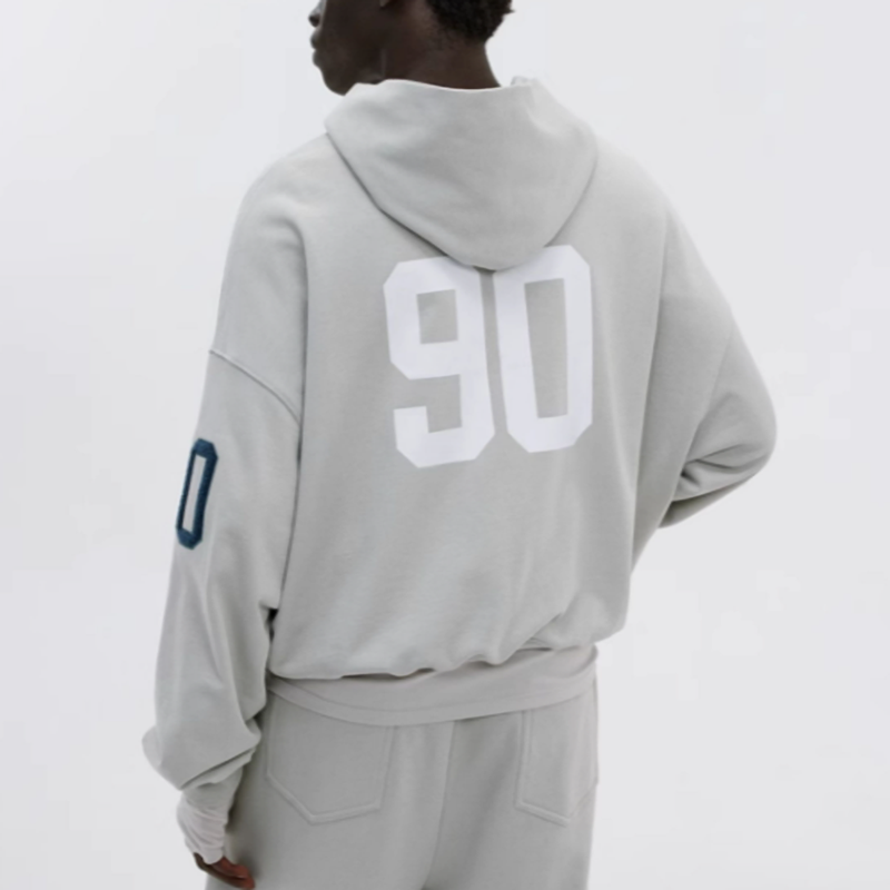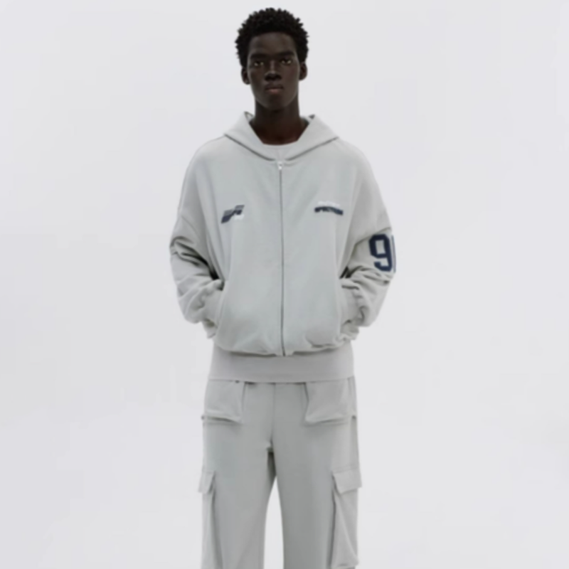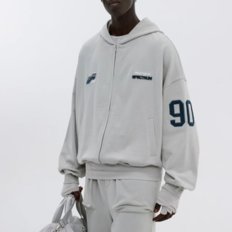 レトロ刺繍フーデッドジャケットは、90の数字刺繍が印象的で、カジュアルなスタイルを演出します。