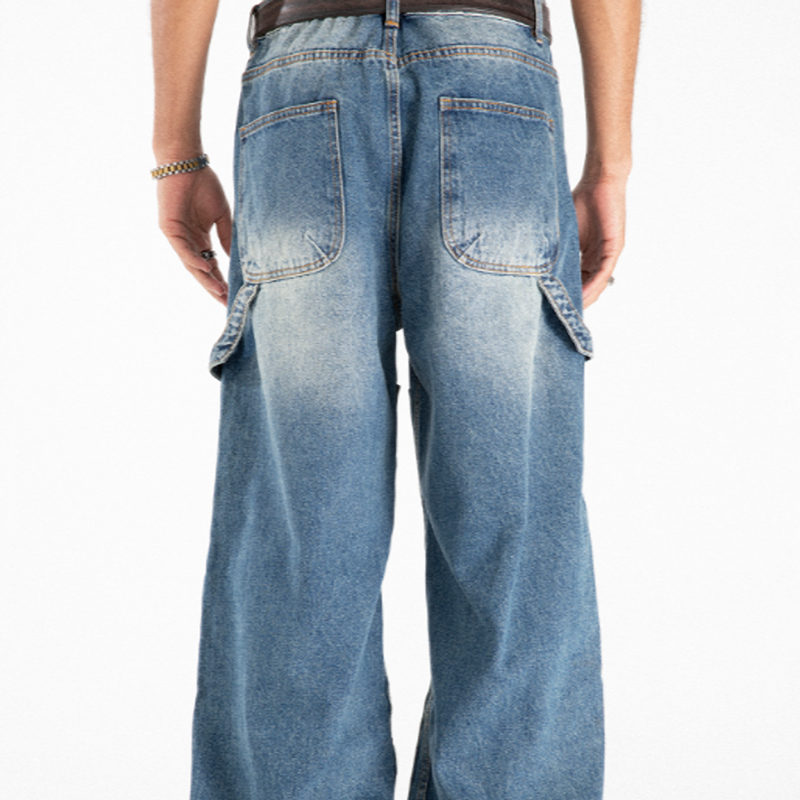 レトロな魅力とモダンなオーバーサイズシルエットが融合したパッチジーンズ